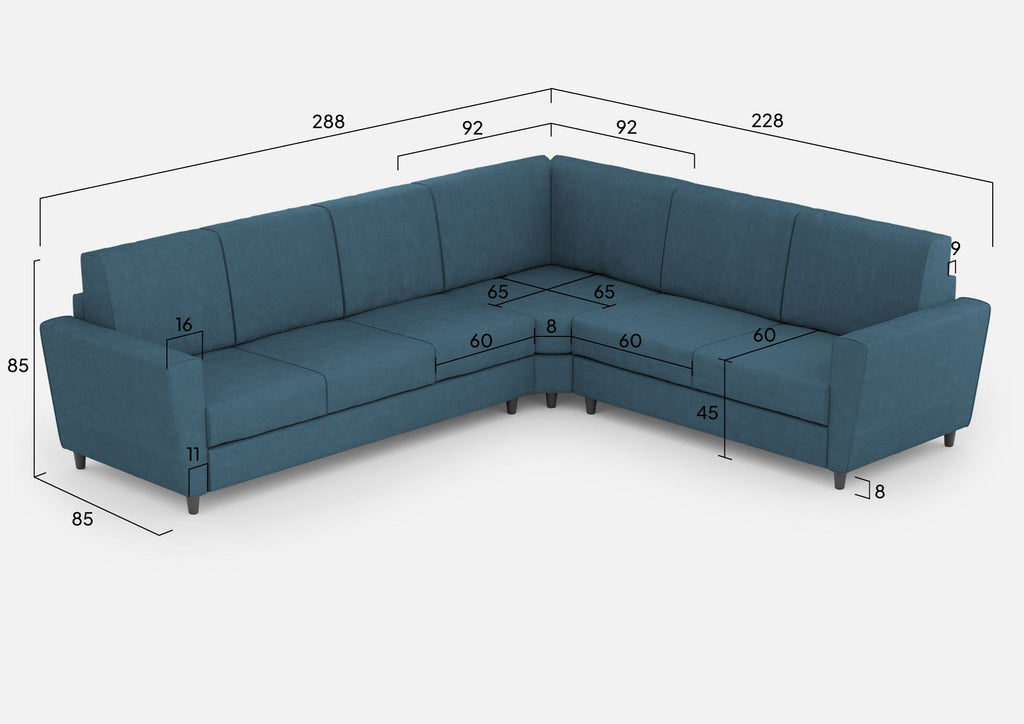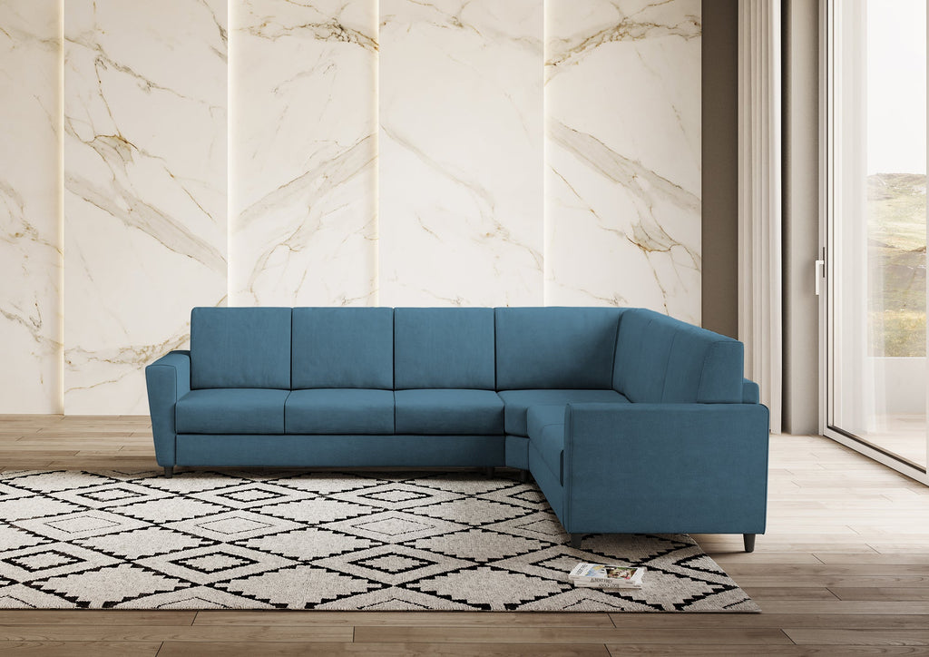 Canapé d'angle Yasel 6 places 288x228x85 cm en tissu Avio