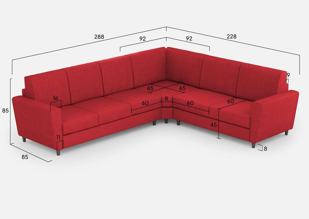 Canapé d'angle Yasel 6 places 288x228x85 cm en tissu rouge