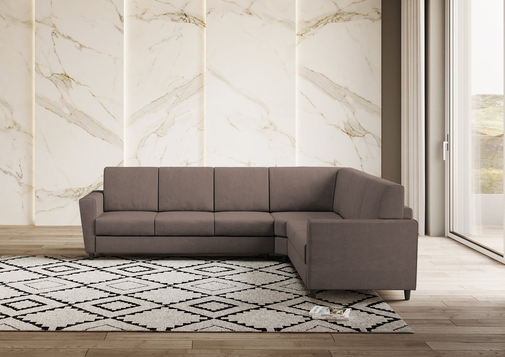 Canapé d'angle Yasel 6 places 288x228x85 cm en tissu taupe