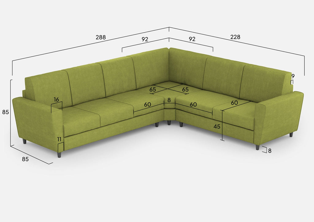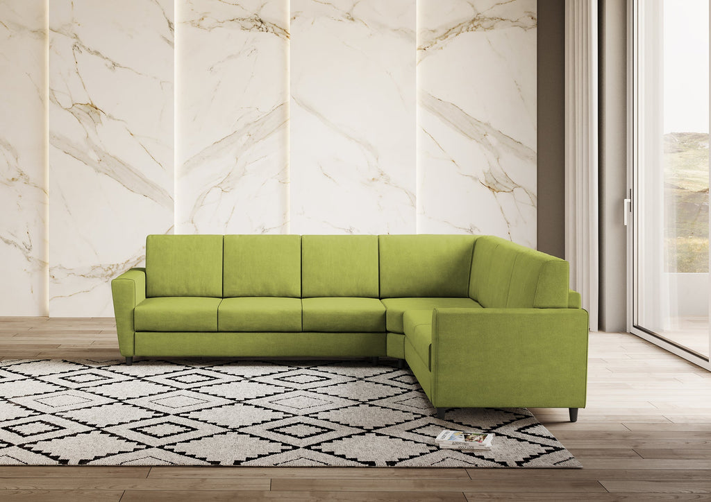 Canapé d'angle Yasel 6 places 288x228x85 cm en tissu vert
