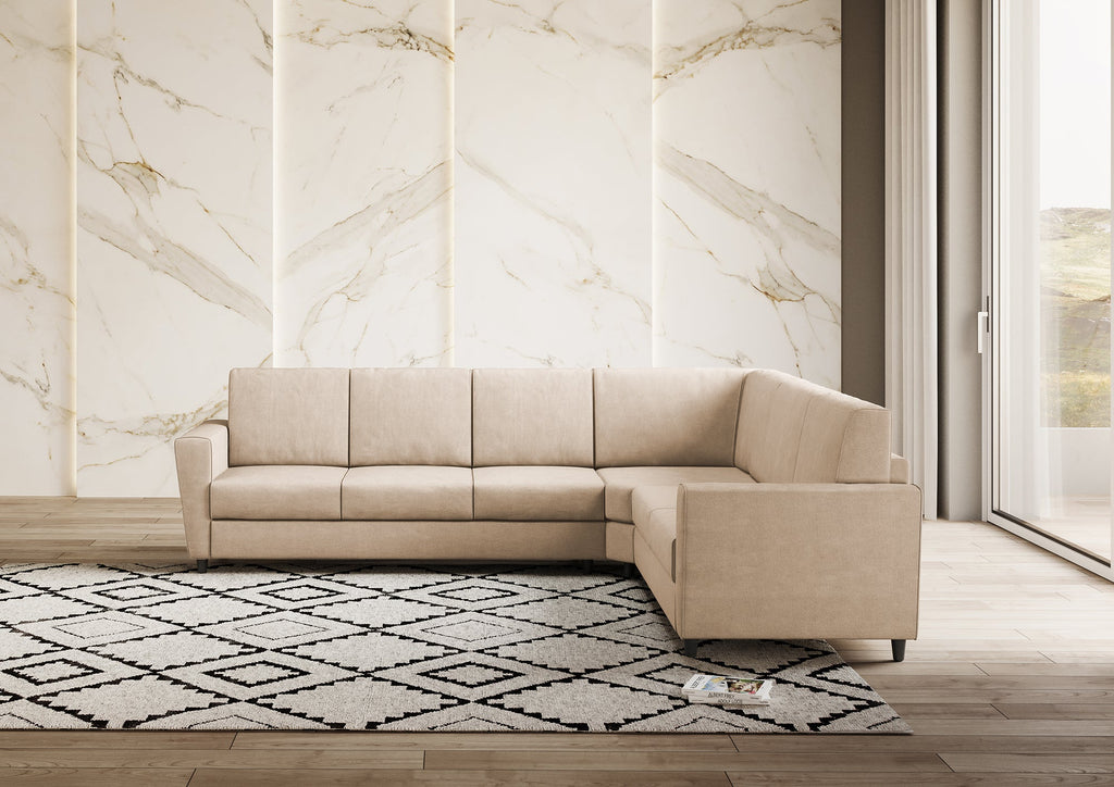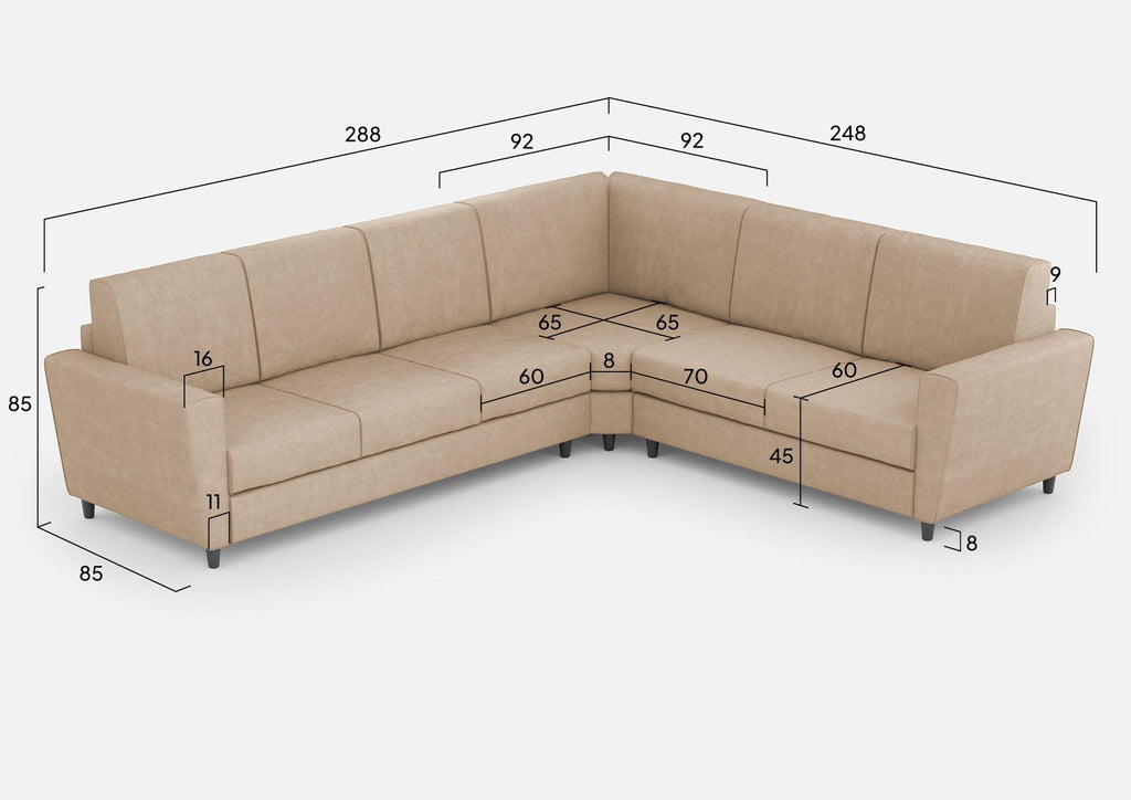 Canapé d'angle 6 places Yasel 288x248x85 cm en tissu beige