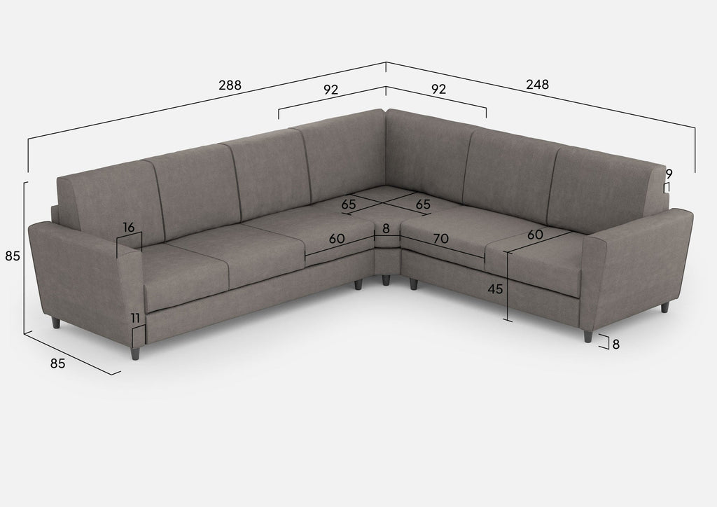 Canapé d'angle Yasel 6 places 288x248x85 cm en tissu gris