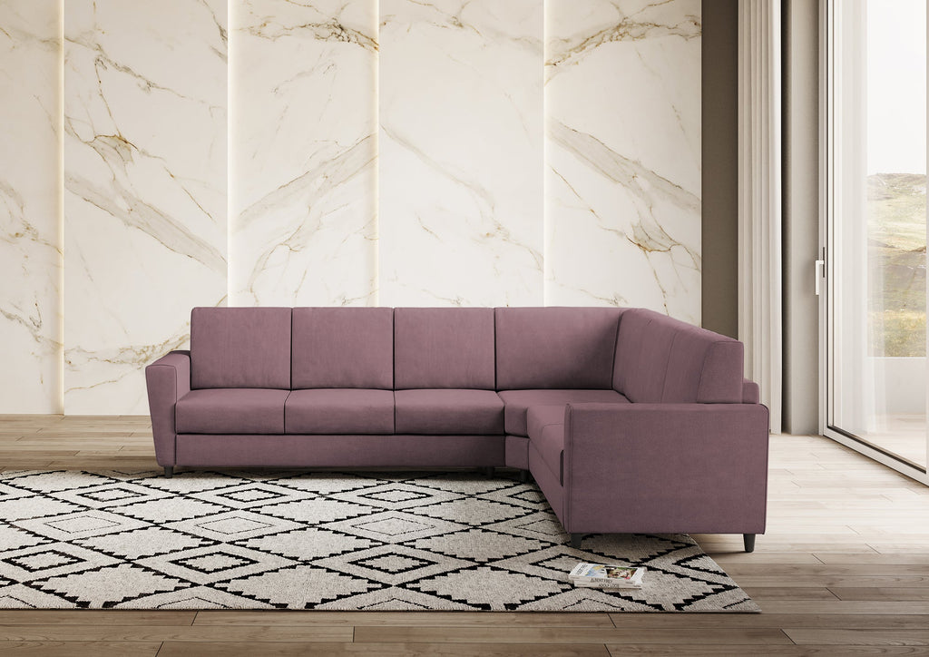 Canapé d'angle 6 places Yasel 288x248x85 cm en tissu prune
