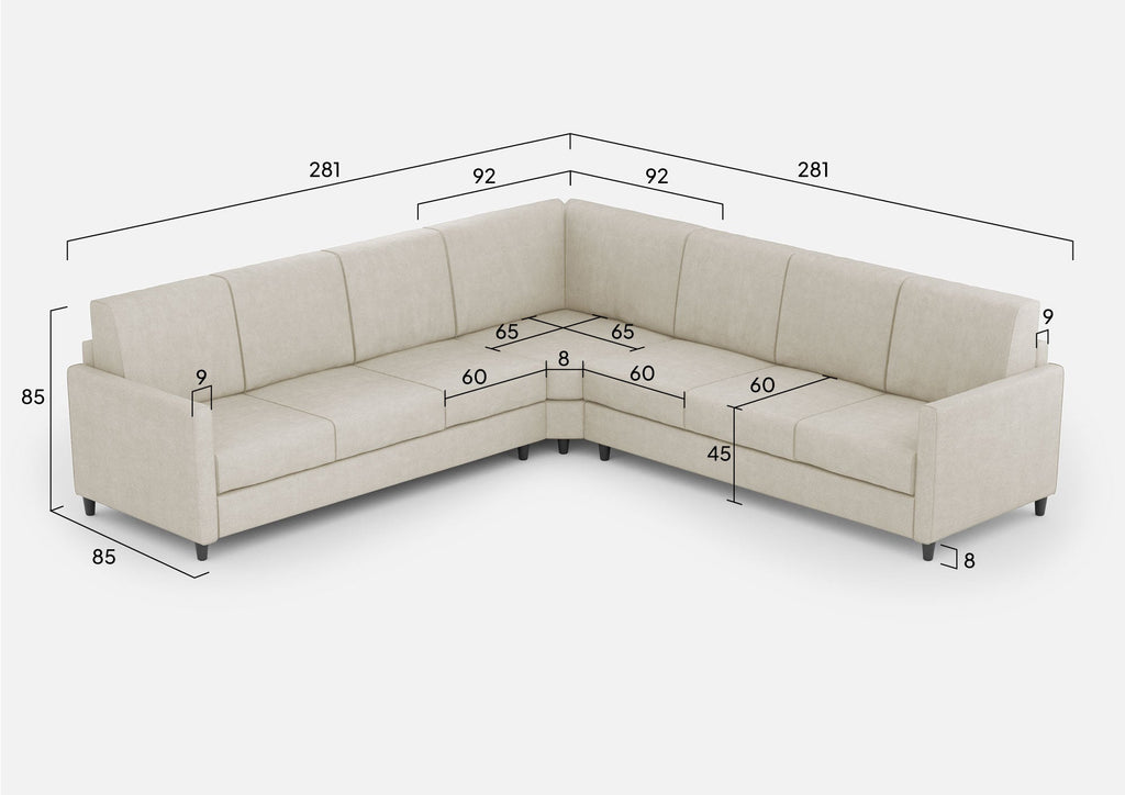 Canapé d'angle Karay 7 places 281x281x85 cm en tissu lait