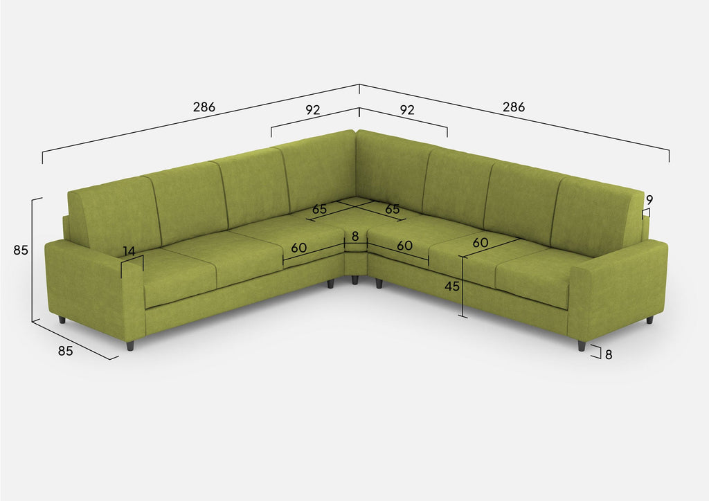 Canapé d'angle Sakar 7 places 286x286x85 cm en tissu vert