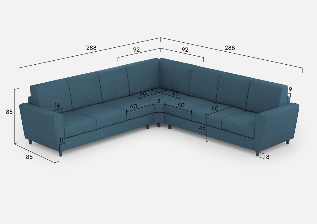 Canapé d'angle Yasel 7 places 288x288x85 cm en tissu Avio