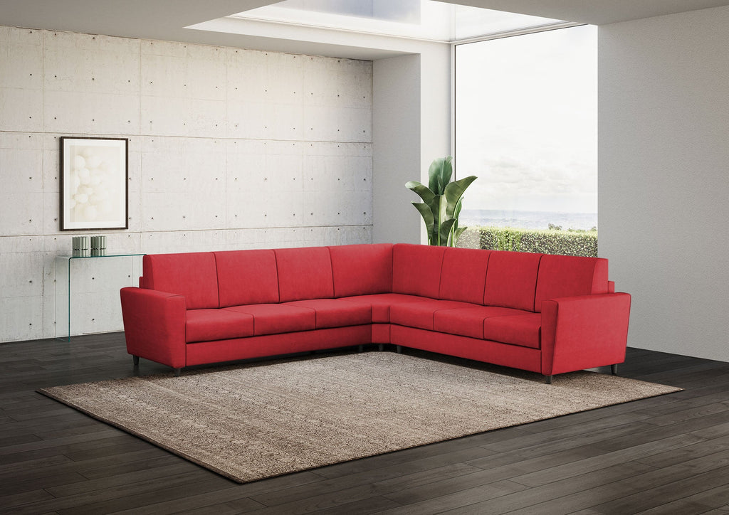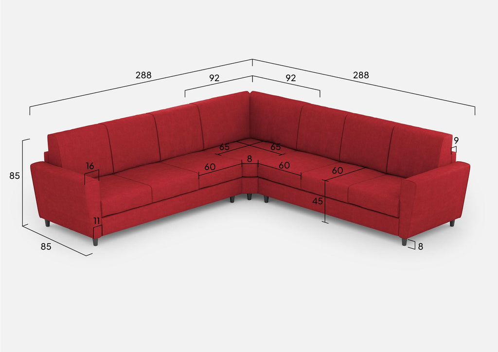 Canapé d'angle Yasel 7 places 288x288x85 cm en tissu rouge