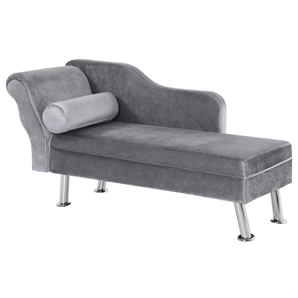 Canapé méridienne avec coussin 160x56x75 cm en métal et tissu gris