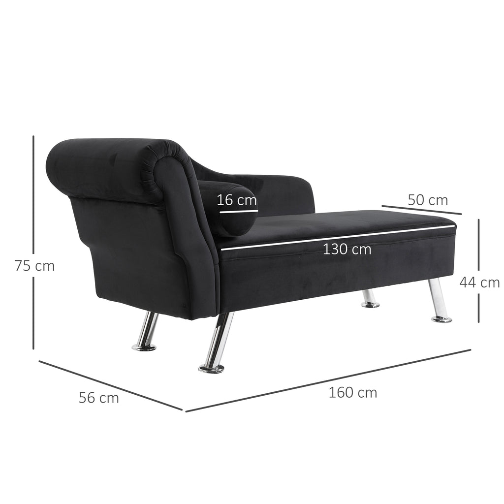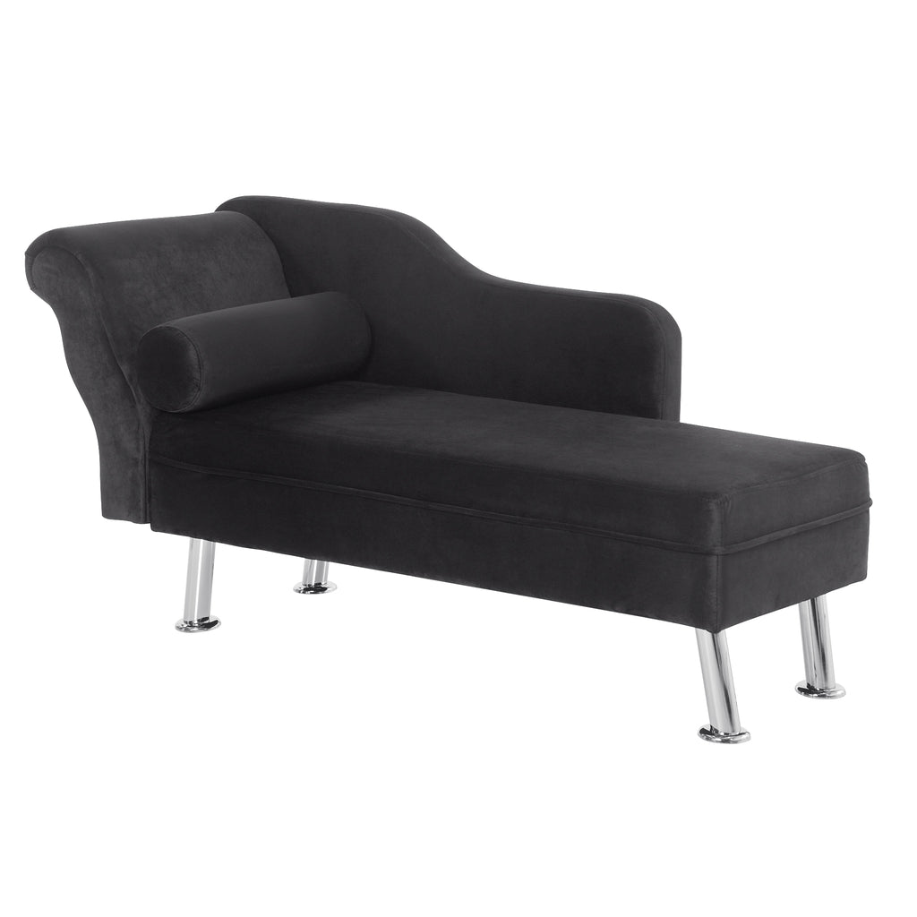 Canapé méridienne avec coussin rond en flanelle noire 160x56x75 cm