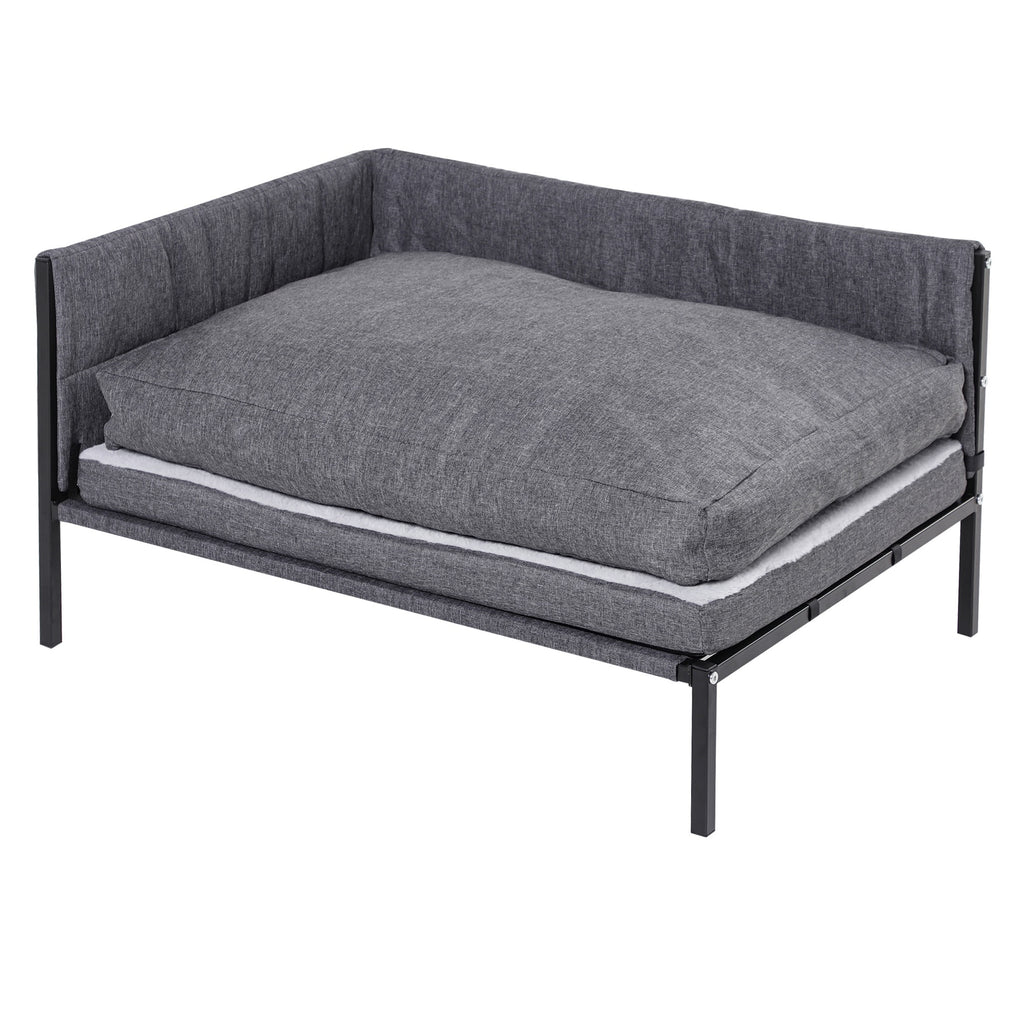 Créez un coin confortable dans lequel votre chien pourra se blottir pour une sieste ! Ce lit pour chien est conçu pour les animaux jusqu'à 35 kg et leur offrira tout le confort dont ils ont besoin. Il dispose de coussins rembourrés recouverts de polyester gris, très doux et parfaits pour se détendre. La structure est en acier avec une finition noire et est surélevée : cela favorise la circulation de l'air et garde votre chien toujours au frais.