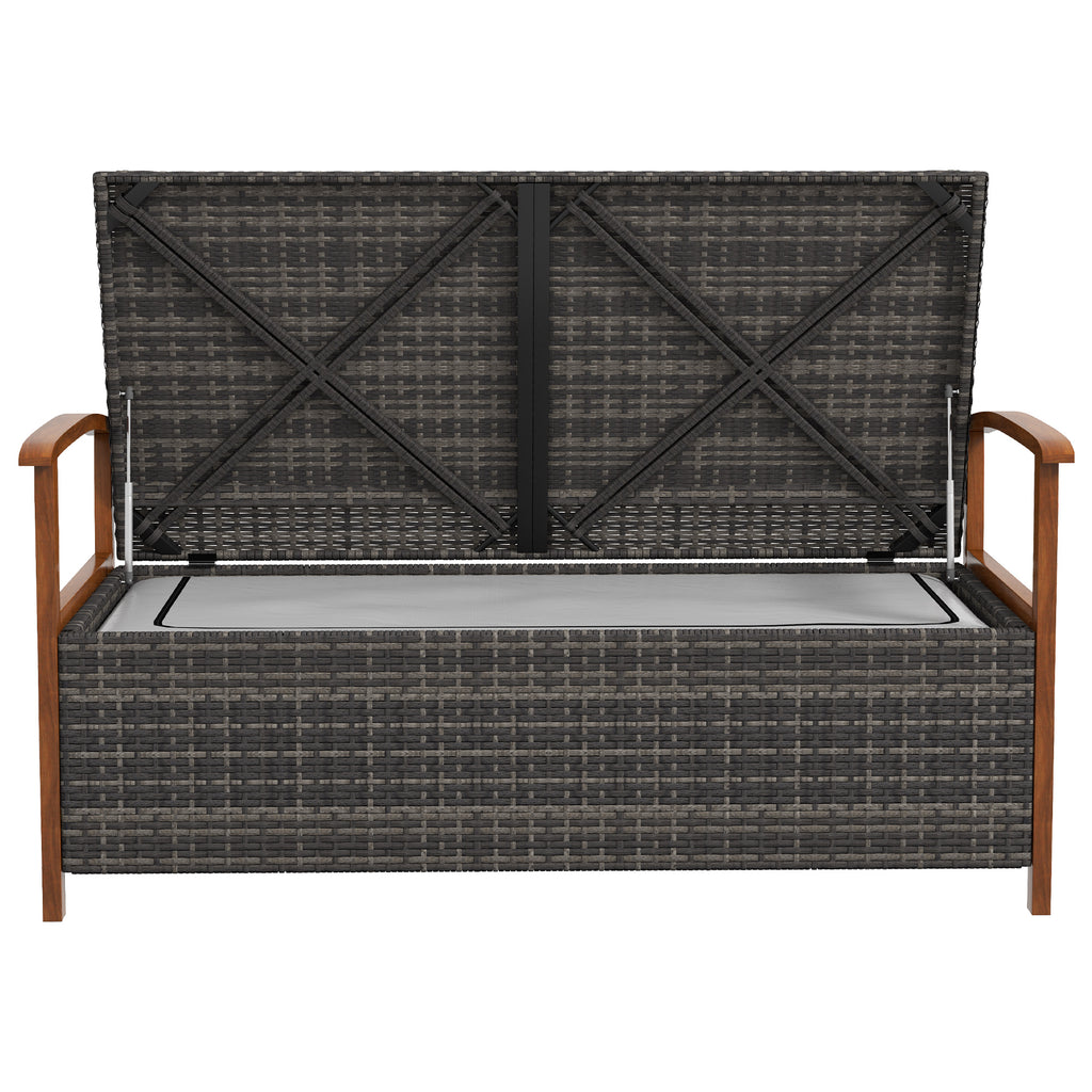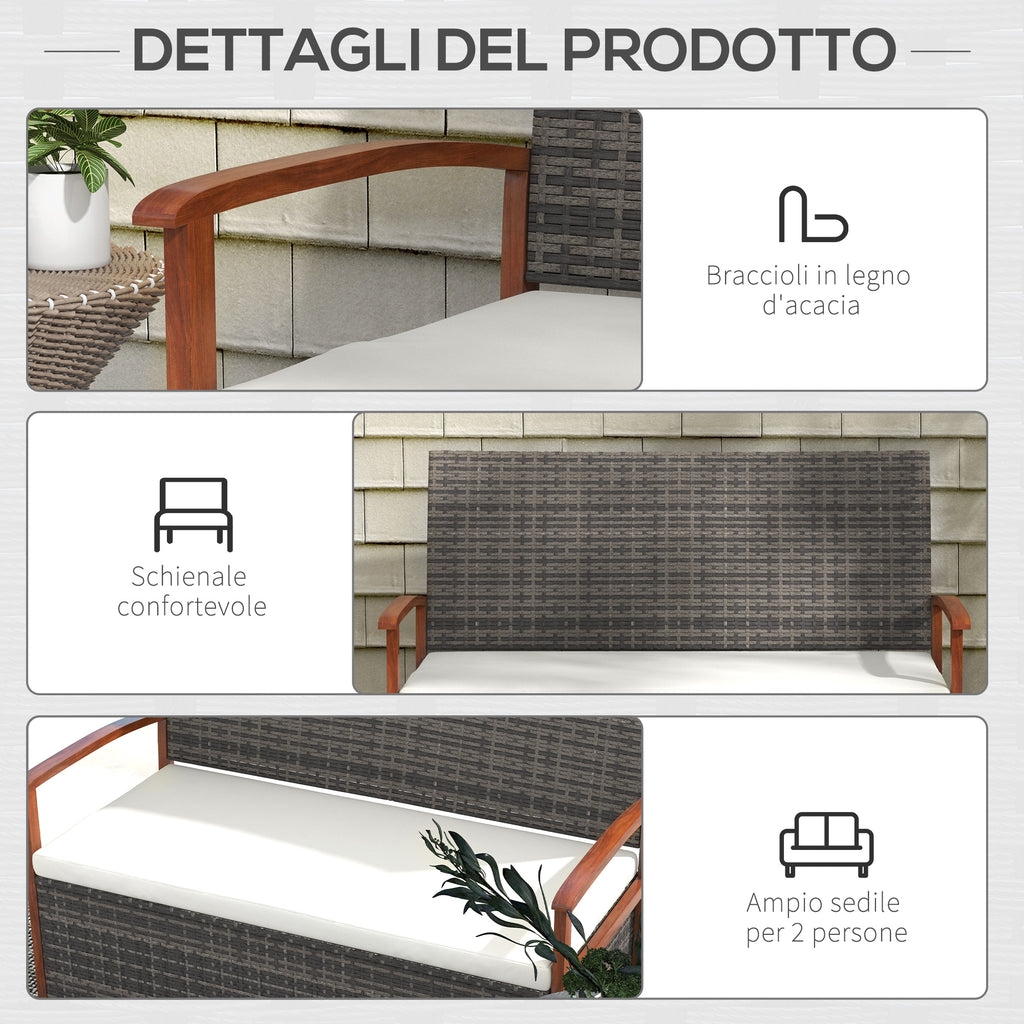 Rivoluziona il tuo spazio esterno e dona un tocco di praticità all'aperto con questo divano in rattan da 2 posti con cuscini annessi. La struttura è realizzata in acciaio robusto e rattan PE per tutte le stagioni. I braccioli in legno di acacia aiutano a creare un pezzo d'accento da abbinare ai mobili esistenti che costituirà una scelta eccellente per la terrazza, il patio, il portico, il bordo piscina o il giardino.