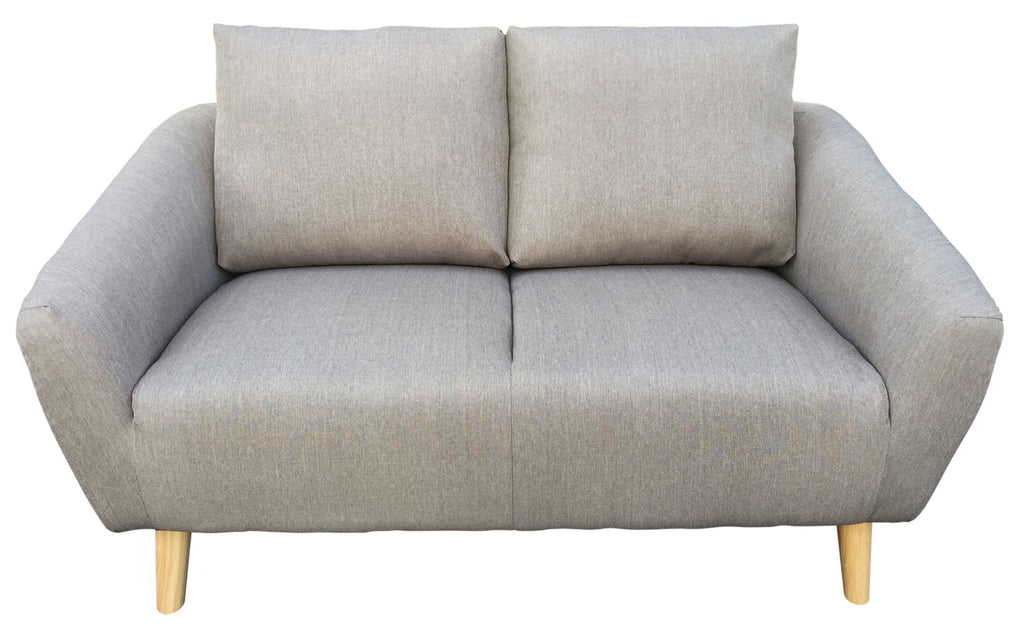 Canapé 2 places au design moderne avec structure en bois et revêtement en tissu beige, pour la maison, la salle d'attente et le bureau.