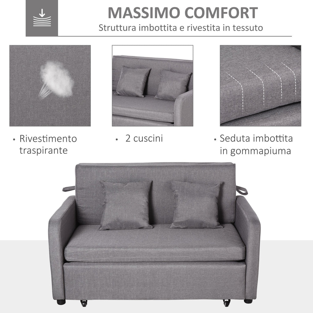 Canapé convertible 2 places 136x92x84 cm en lin gris