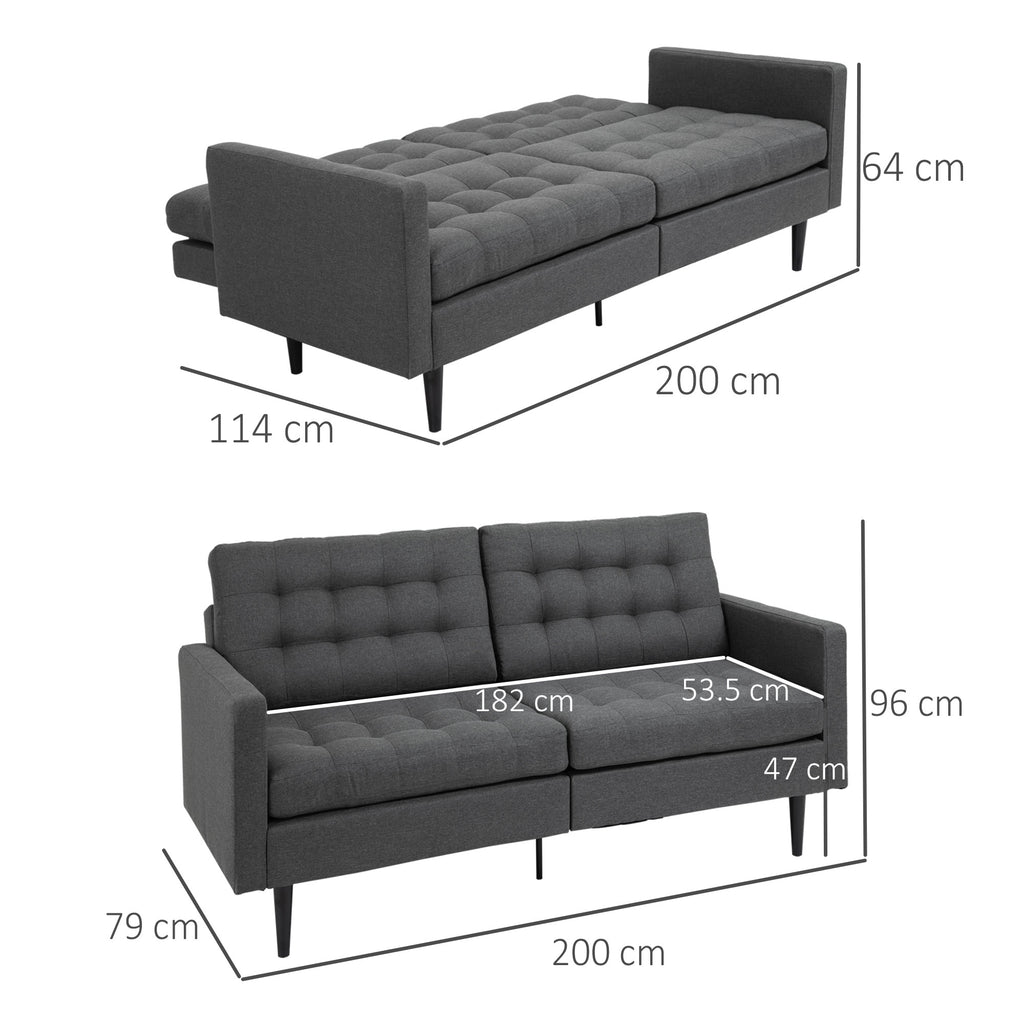 - Dimensions hors tout : 200L x 79P x 96Acm (canapé), 200L x 114P x 64Acm (lit)