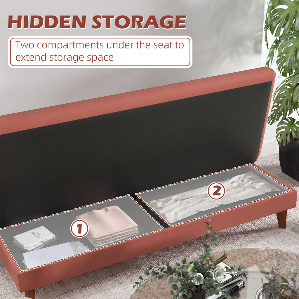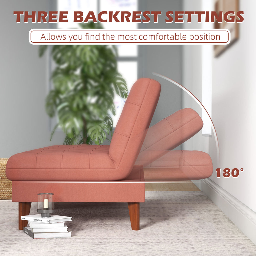 Canapé lit 3 places 185x85x84 cm en tissu effet lin orange
