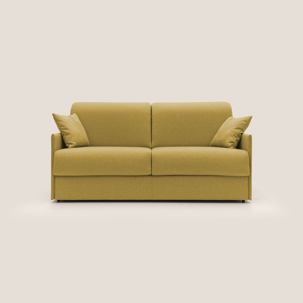 Il divano letto EVANS è una soluzione ideale per chi cerca comfort e funzionalità. Realizzato in tessuto impermeabile, è resistente alle macchie e facile da pulire. Dotato di un meccanismo di apertura e chiusura a ribalta semplice da utilizzare, è perfetto per piccoli spazi e per ospitare amici e familiari. Il suo design italiano di alta qualità lo rende resistente ed eterno nel tempo.
