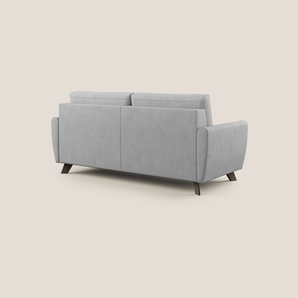 Le canapé-lit se distingue par ses lignes douces et confortables, avec un dossier rembourré fabriqué à la main en Italie. Ce canapé représente une interprétation moderne du canapé capitonné classique. Les pieds en bois s'adaptent parfaitement à un style scandinave et shabby. Le mécanisme de pliage du canapé comprend un plan de couchage en grillage électro-soudé, mais il peut également être réalisé avec un plan de couchage à lattes en hêtre. Les deux options ont une extrémité en sangle élastique qui rend l'assise plus douce et plus accueillante lorsque le canapé est fermé. Le tissu du canapé est doux, imperméable et résistant aux taches, ce qui facilite le nettoyage. De plus, le traitement déperlant permet de laver le canapé en machine à 30° pour un entretien rapide et minutieux.