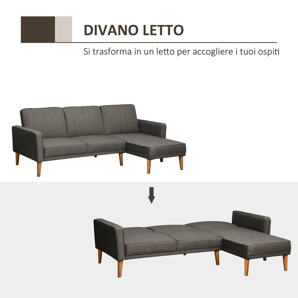 Canapé lit d'angle 216x139x80 cm avec péninsule en bois et tissu gris