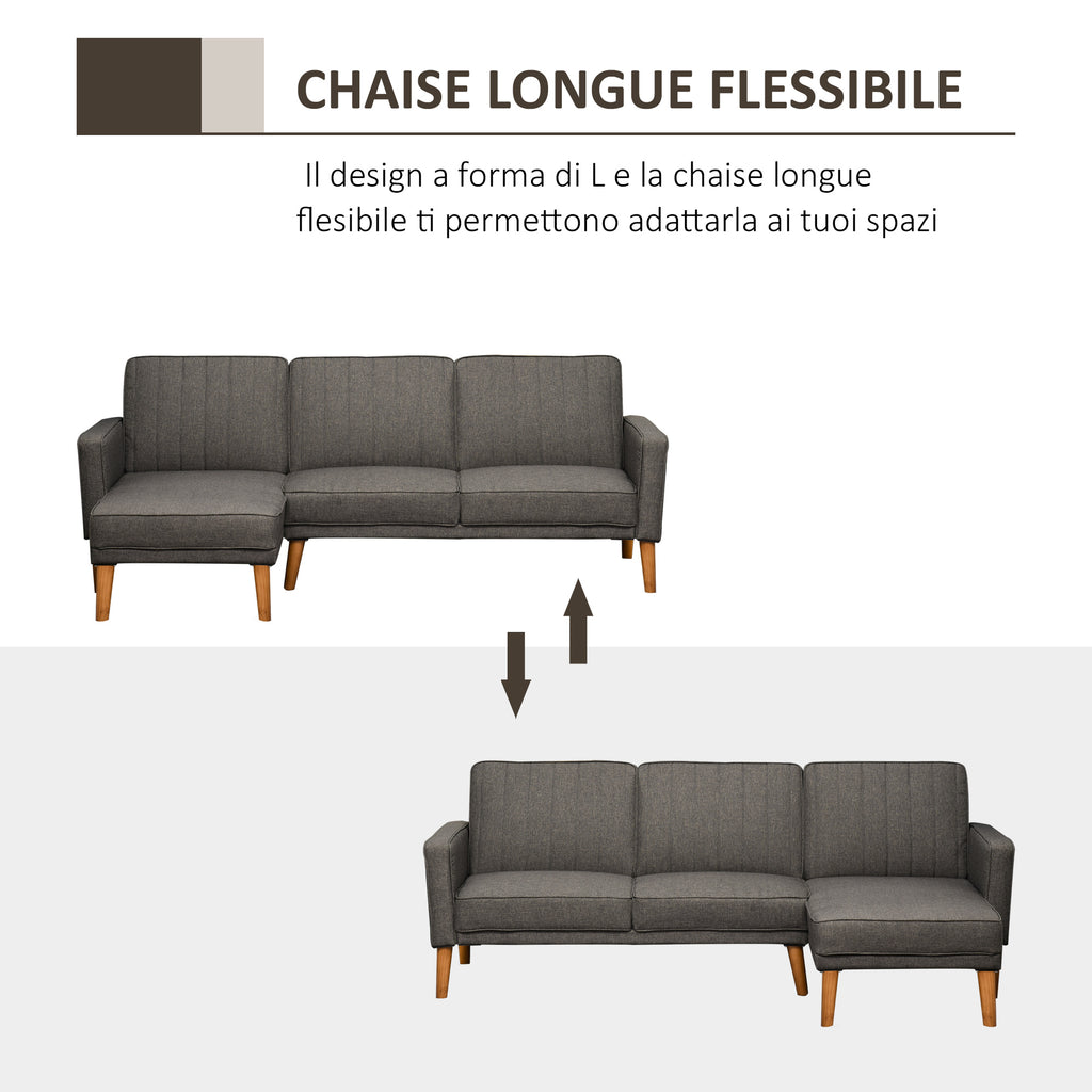 Canapé d'angle convertible 216x139x80 cm avec péninsule en bois et tissu gris