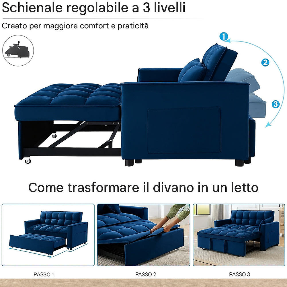 - 1 x Divano Letto Apribile Reclinabile 3 Posizioni con Rivestimento in Velluto Blu