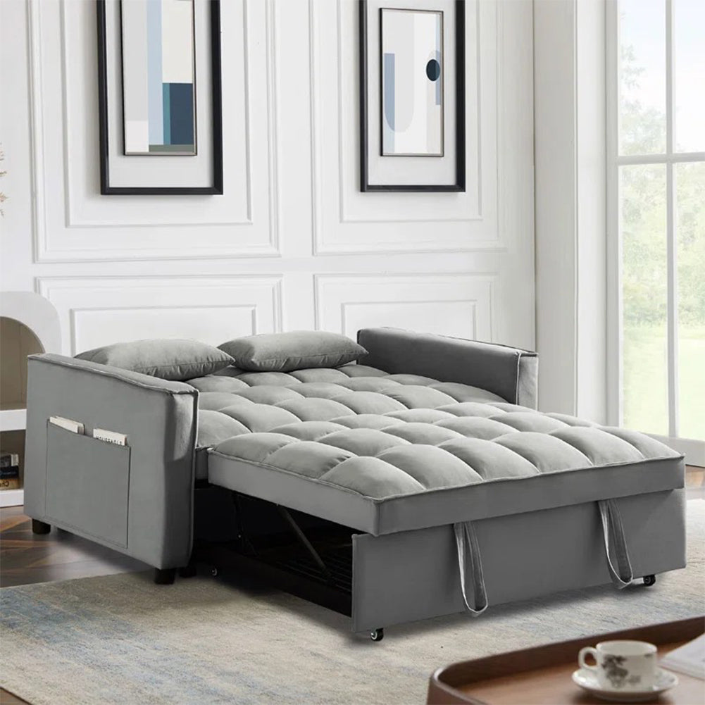 - 1 x Divano Letto Apribile Reclinabile 3 Posizioni con Rivestimento in Velluto Grigio