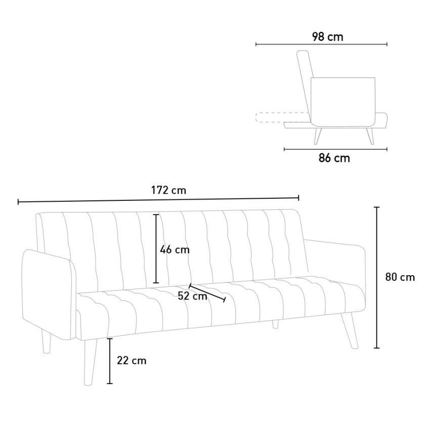 - Dimensions du canapé : 172 x 86 x 80 cm (largeur, profondeur, hauteur)