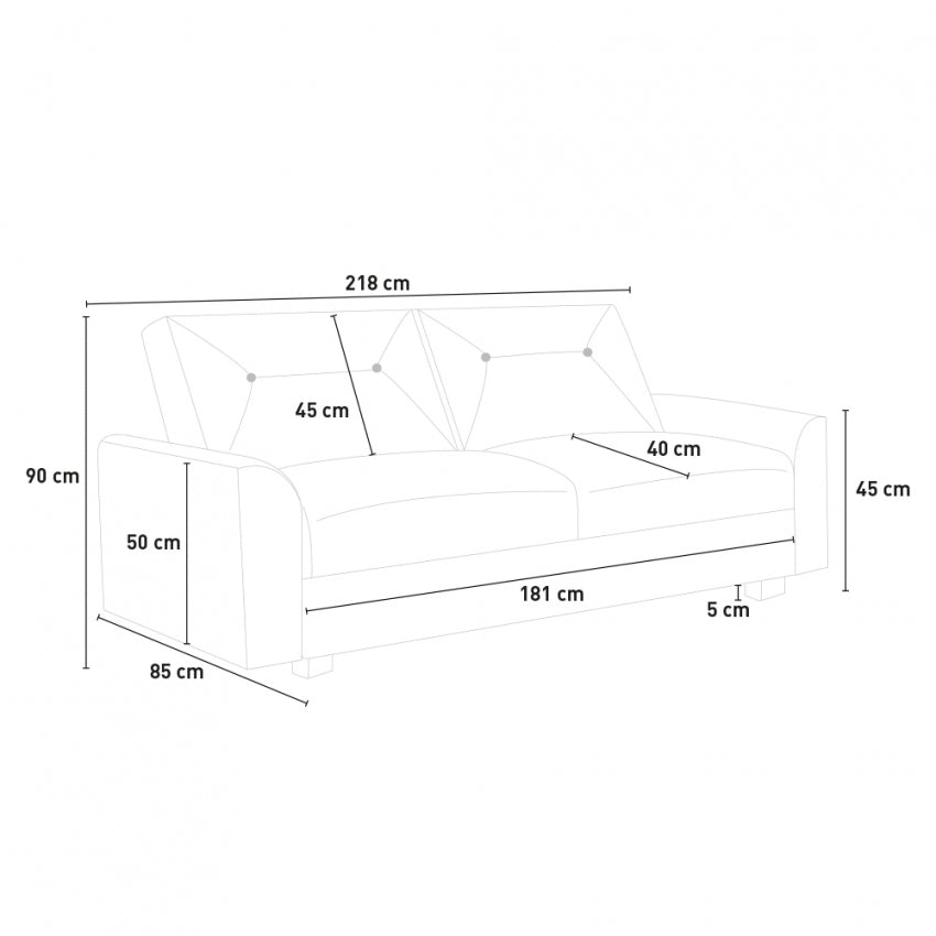 - Dimensions du canapé : 218 x 40 x 90 cm (largeur, profondeur, hauteur)