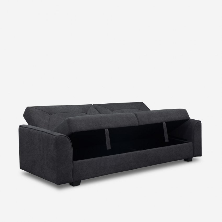 Grâce au simple mécanisme clic-clac qui permet de rabattre le dossier, le canapé Verto se transforme facilement en un lit confortable pour toute occasion, s'avérant ainsi utile aussi bien dans les espaces confinés d'un salon informel que lorsque vous avez besoin d'un Canapé 2en1 pour un studio ou un couchage supplémentaire pour accueillir amis ou proches, avec un rembourrage qui promet un sommeil paisible et profond à tous vos invités qui y séjourneront. Le siège cache également un compartiment contenant où vous pouvez ranger des coussins, des couvertures, des draps et tout ce dont vous avez besoin pour rendre la détente ou le repos plus confortable.