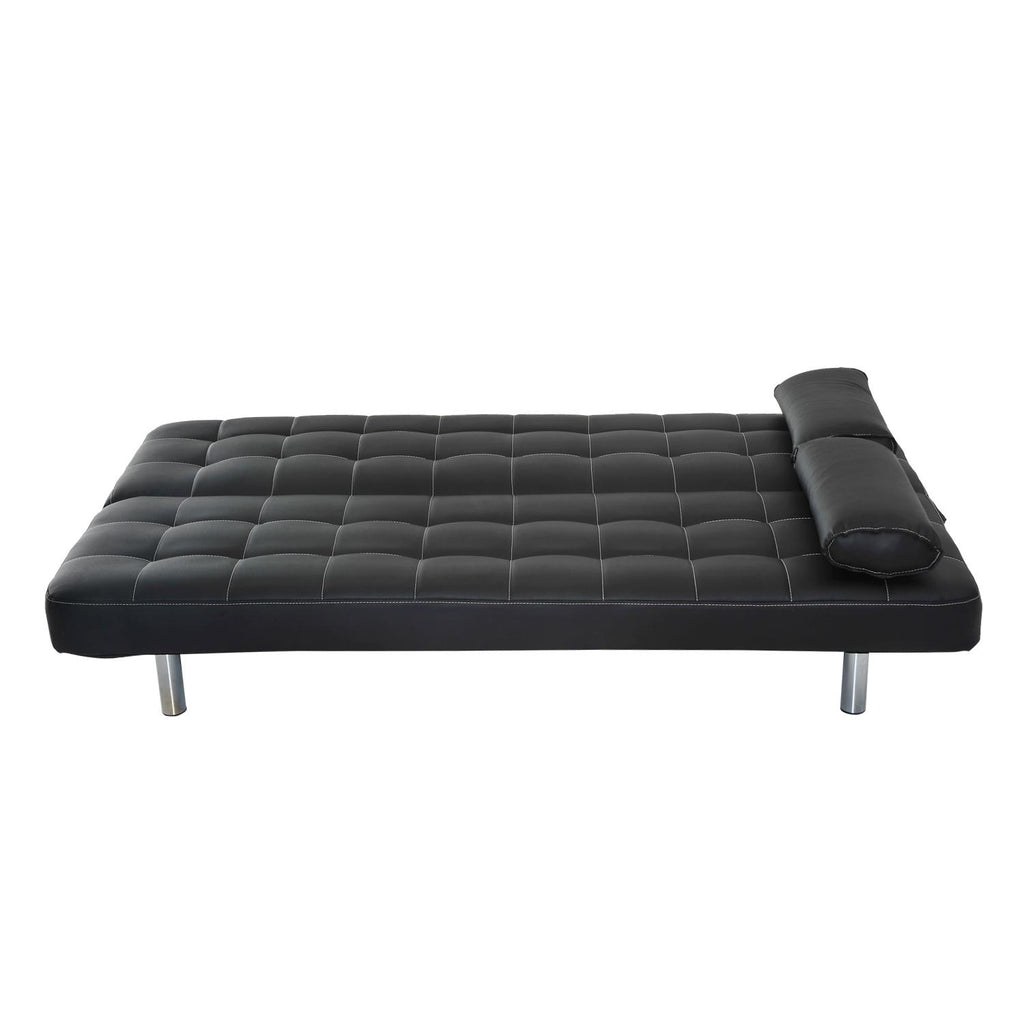 Canapé convertible en similicuir noir avec 2 coussins 180x94x88 cm