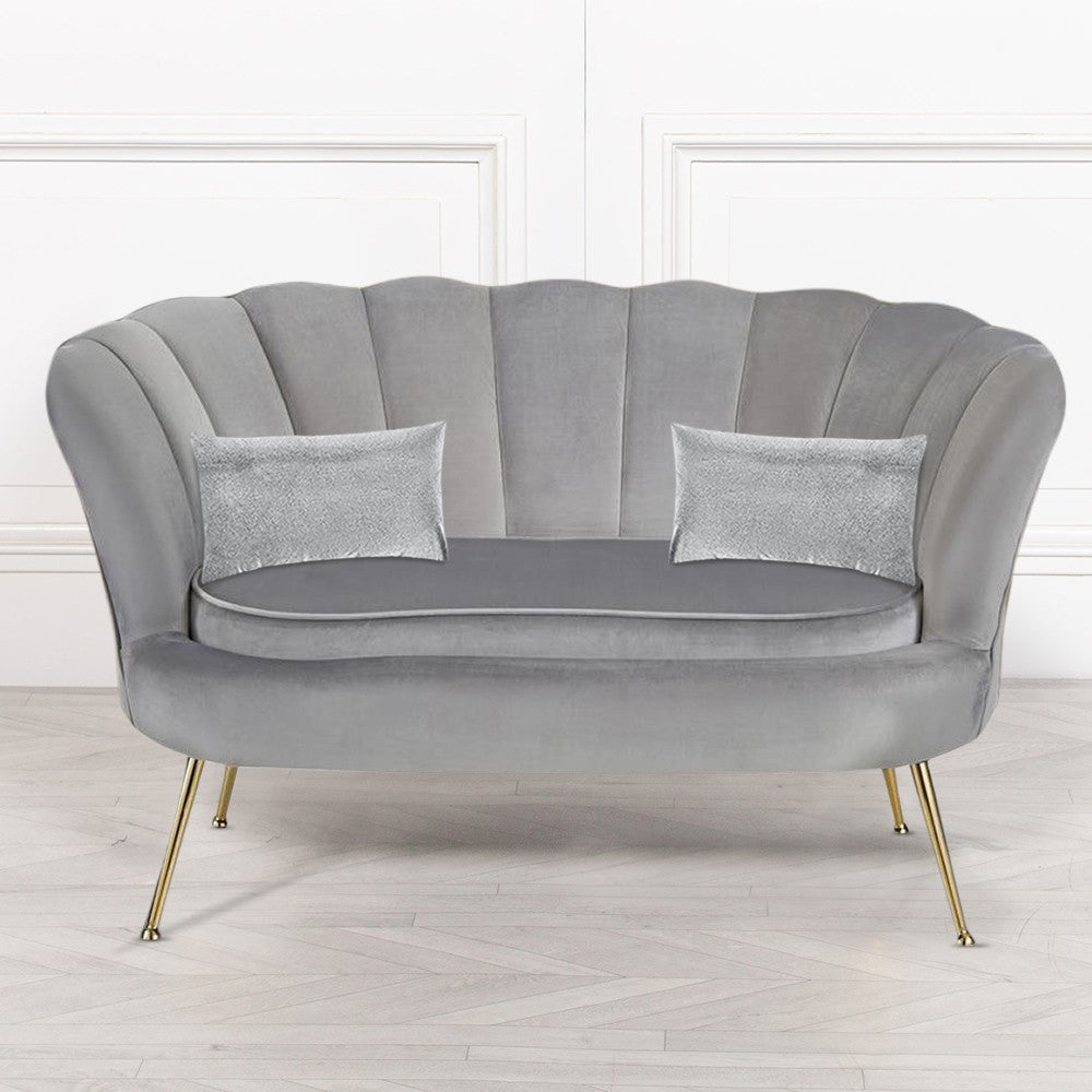 Canapé de salon 122x73x78 cm 2 places en velours assise coque Lola Gris