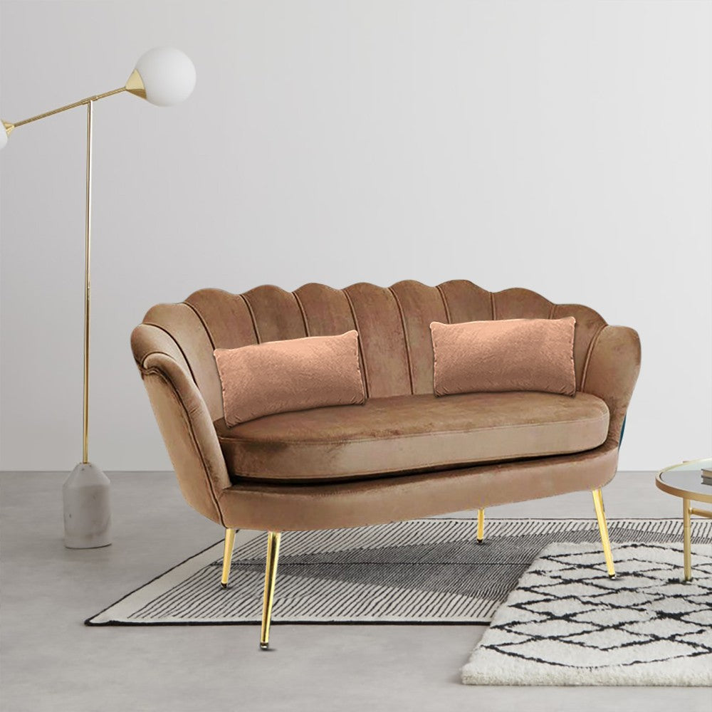 Canapé de salon 122x73x78 cm 2 places en velours assise coque Lola marron