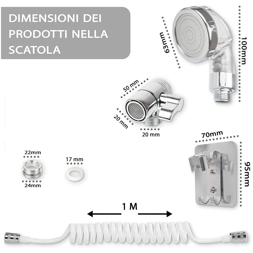 À l'intérieur de la douchette, il y a des pierres minérales pour purifier l'eau de la douche en éliminant les impuretés (chlore, calcaire, bactéries et métaux lourds) en évitant les dépôts de calcaire, de plus les sphères minérales décomposent les particules d'eau pour faciliter l'absorption des minéraux et faciliter l'évacuation de l'eau .