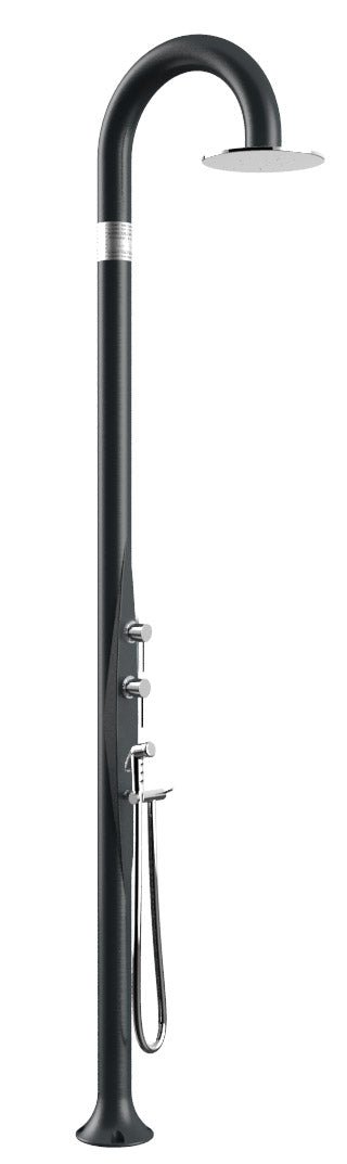Douche de piscine de jardin avec pomme de douche 250 mm, mitigeur chaud-froid, inverseur et douchette mobile 232x30x17 cm Arkema Funny Yin Anthracite