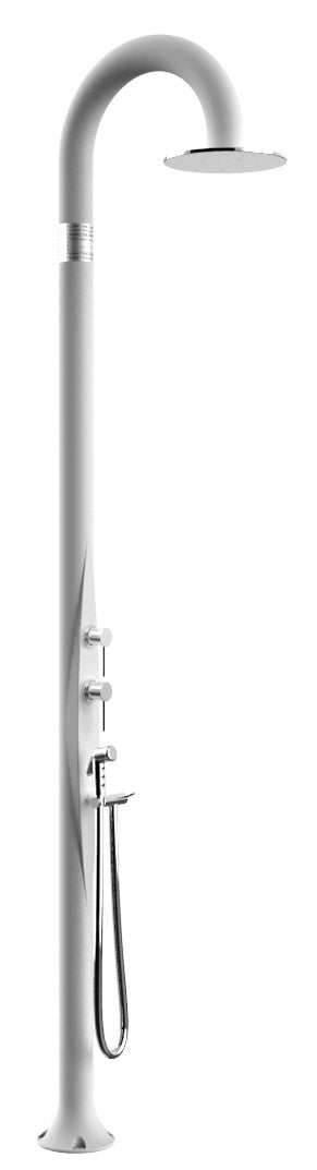 Douche de piscine de jardin avec pomme de douche 250 mm, mitigeur chaud-froid, inverseur et douchette mobile 232x30x17 cm Arkema Funny Yin Blanc