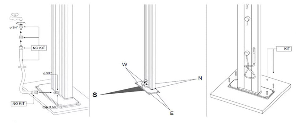 Questo tipo di doccia esterna ha l'attacco diretto alla linea principale dell'acqua calda e fredda.