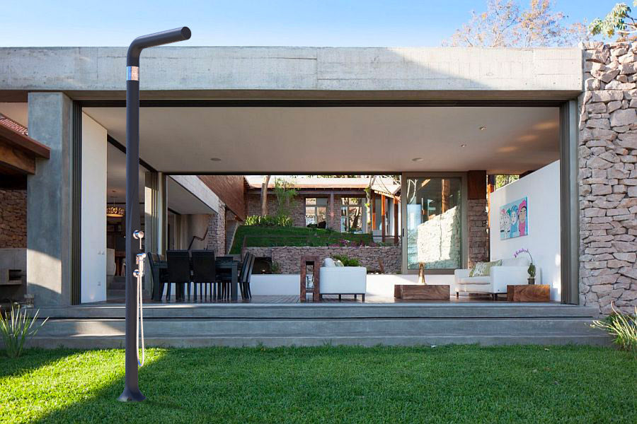 Questo tipo di doccia esterna ha l'attacco diretto alla linea principale dell'acqua calda e fredda.