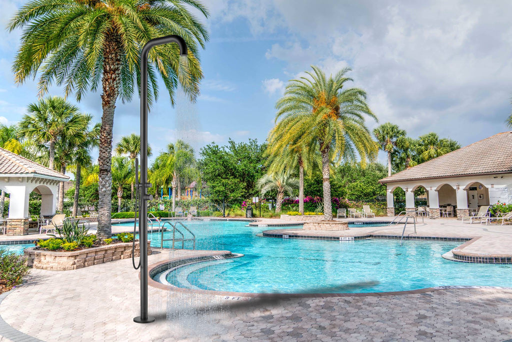 - douche extérieure en acier noir recommandée pour un usage commercial, activités de plein air, privé, pour piscine extérieure, piscine intérieure ou pour salle de bain à domicile.