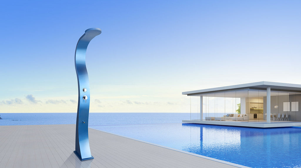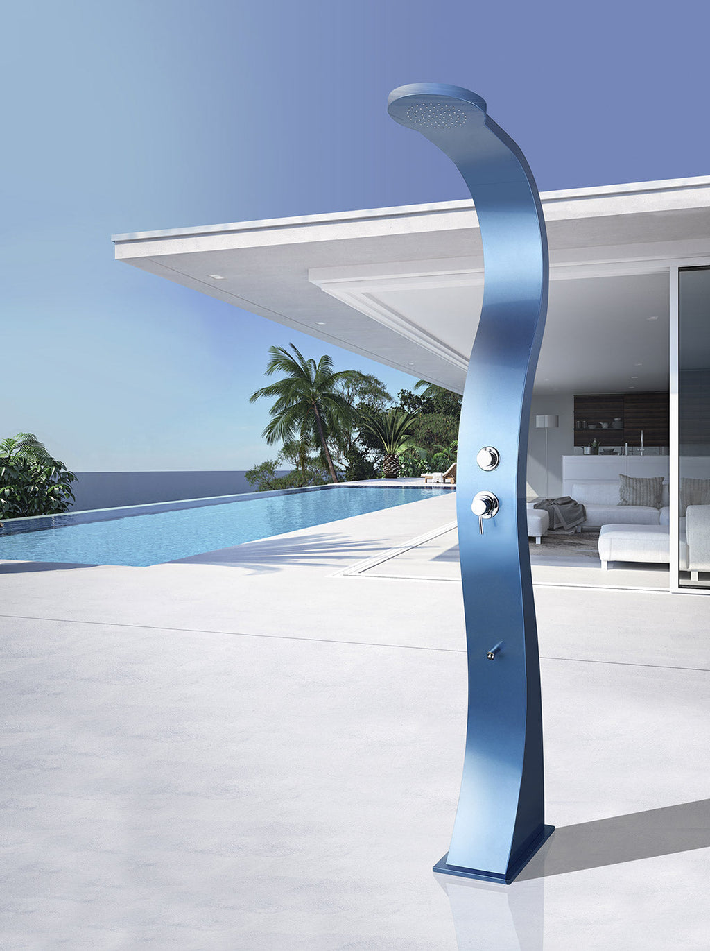 Les courbes de cette douche font le bonheur des amateurs de design. Sa structure en aluminium et sa finition légèrement chatoyante sont un miroir parfait pour les reflets du soleil. Ses doubles arrivées d'eau vous offrent une douche chaude quelle que soit la saison. Son mitigeur en acier inoxydable offre à l'utilisateur une sélection précise de la température, tandis que son inverseur permet de choisir entre la douche pluie intégrée ou le rince-pieds pour une utilisation simple et pratique.