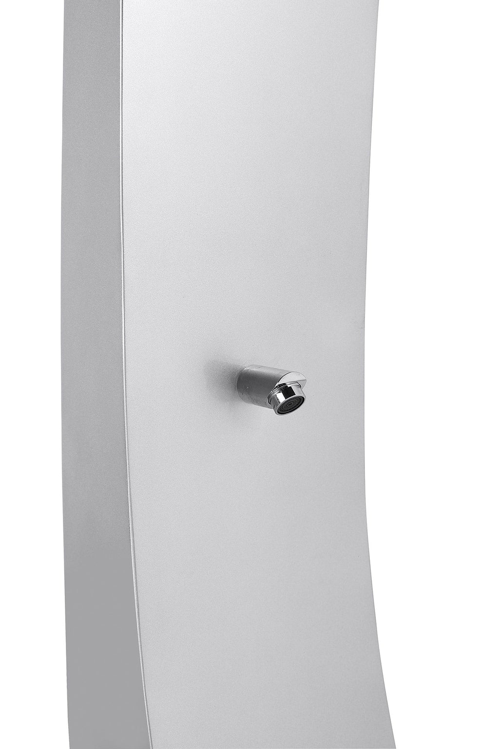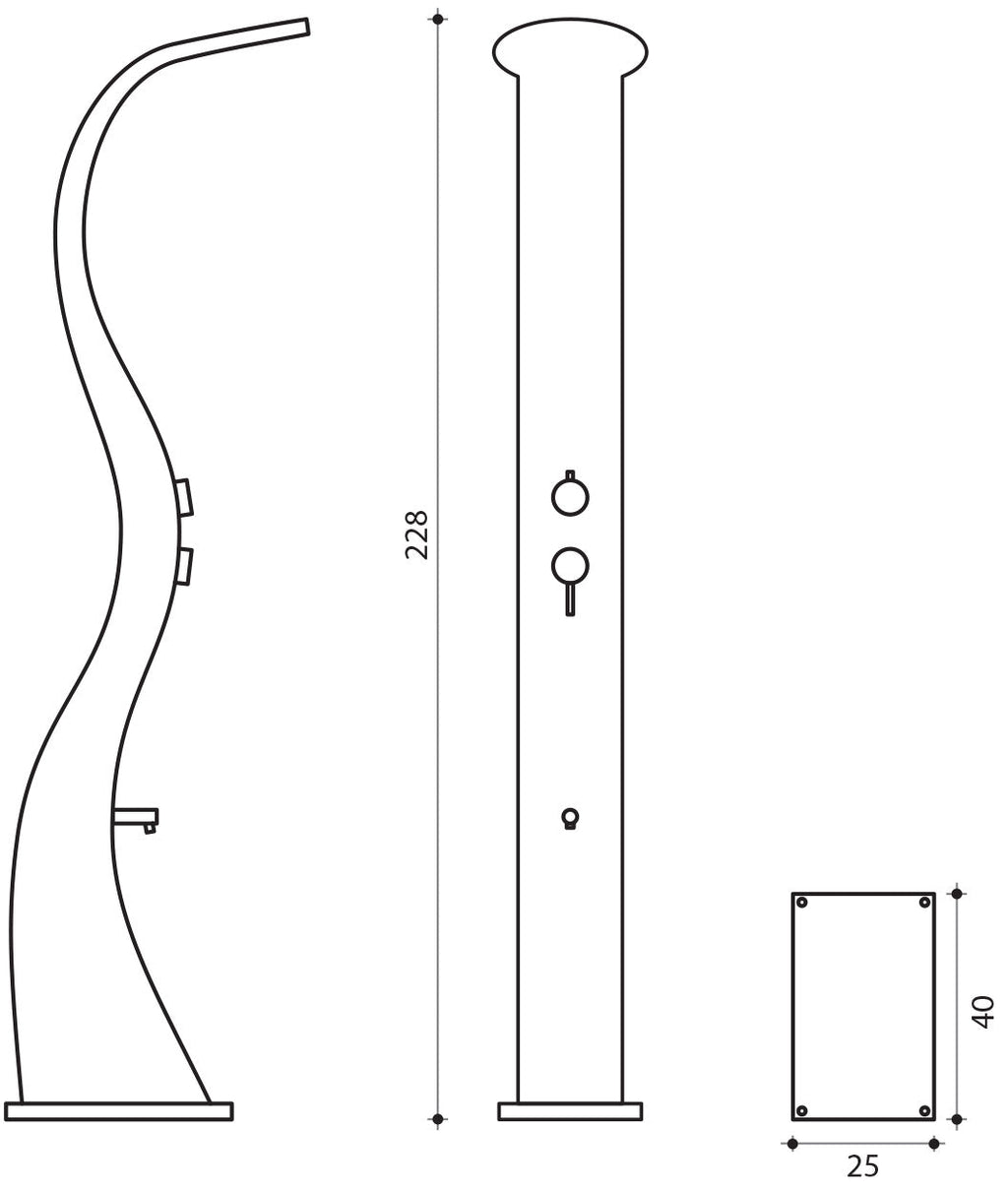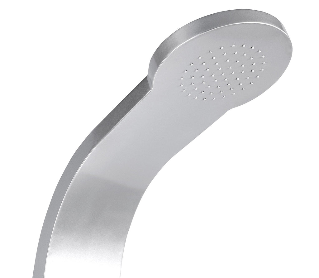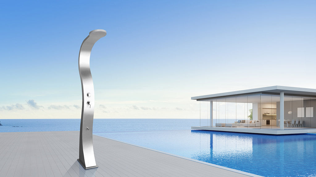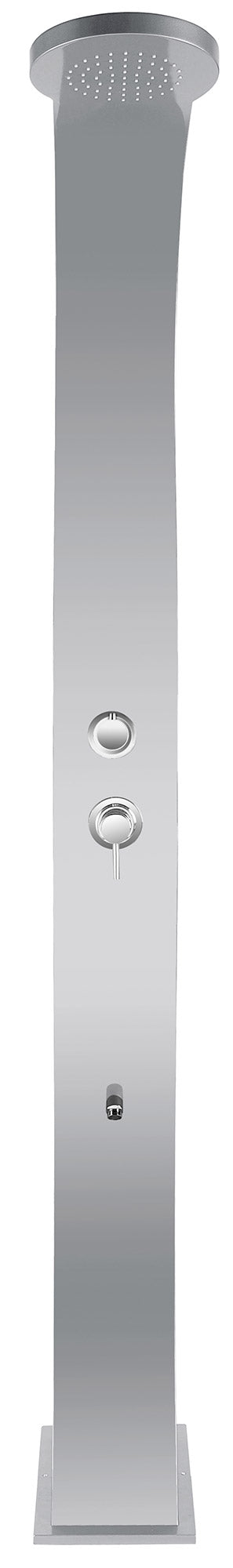 Les courbes de cette douche font le bonheur des amateurs de design. Sa structure en aluminium et sa finition légèrement chatoyante sont un miroir parfait pour les reflets du soleil. Ses doubles arrivées d'eau vous offrent une douche chaude quelle que soit la saison. Son mitigeur en acier inoxydable offre à l'utilisateur une sélection précise de la température, tandis que son inverseur permet de choisir entre la douche pluie intégrée ou le rince-pieds pour une utilisation simple et pratique.