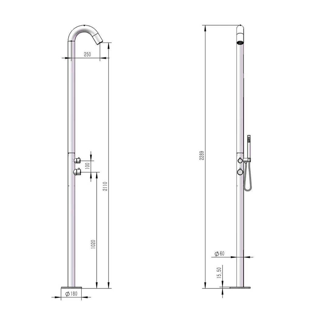 Douche de jardin 228,9x18x25 cm avec mitigeur Sined Alghero en acier inoxydable et douchette