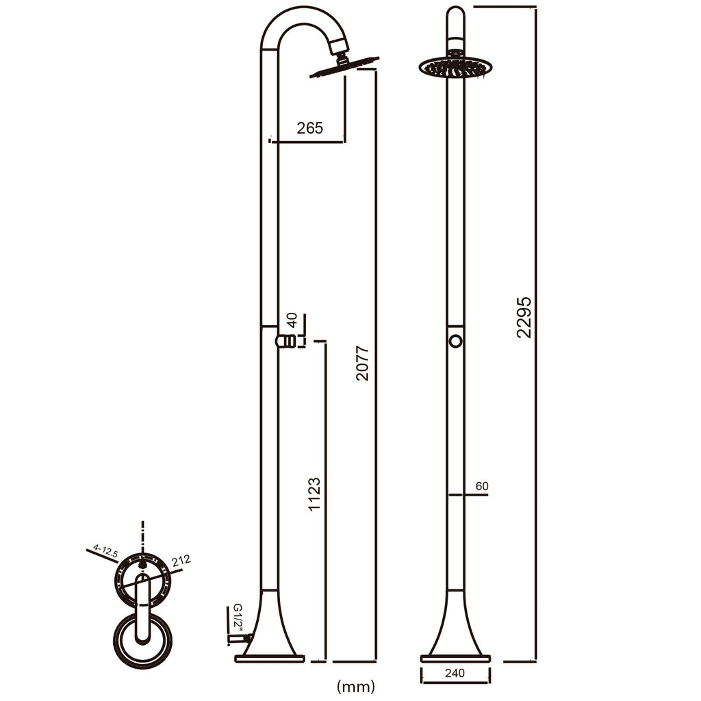 Doccia da Giardino ad Acqua Fredda in Acciaio Inox Soffione Rotondo Sined Luna TMP