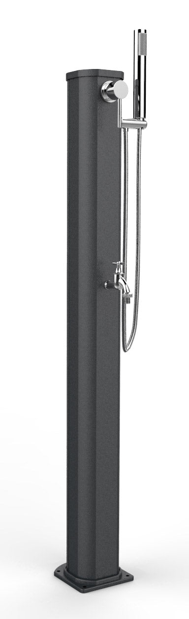 Doccia da Giardino Piscina Con Miscelatore Caldo-Freddo Doccetta Mobile e Rubinetto Lavapiedi 115x20x18,5cm Arkema Jolly Go Antracite