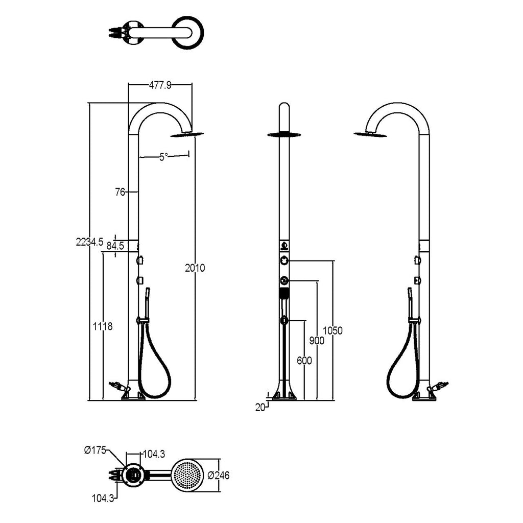 Doccia da Giardino Miscelatore e Doccetta 17,5x17,5xH223,5 cm Sined Luna Nera
