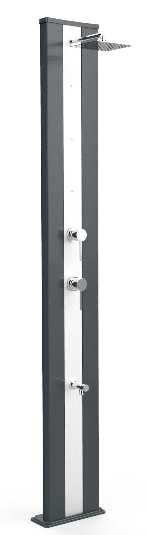 Doccia da Giardino Piscina Con Miscelatore Caldo-Freddo Nebulizzatore e Lavapiedi 229x14x34cm Arkema Dada S con Fascia Inox Antracite