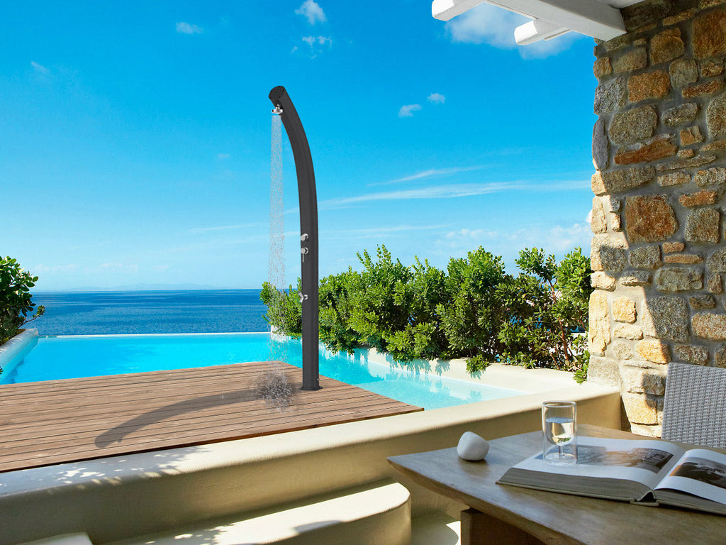 L'harmonie et l'élégance de ses formes en font un complément d'ameublement adapté à tout environnement, que ce soit uniquement pour le jardin ou si vous avez besoin d'une douche pour votre piscine. Idéal pour les équipements publics et balnéaires.