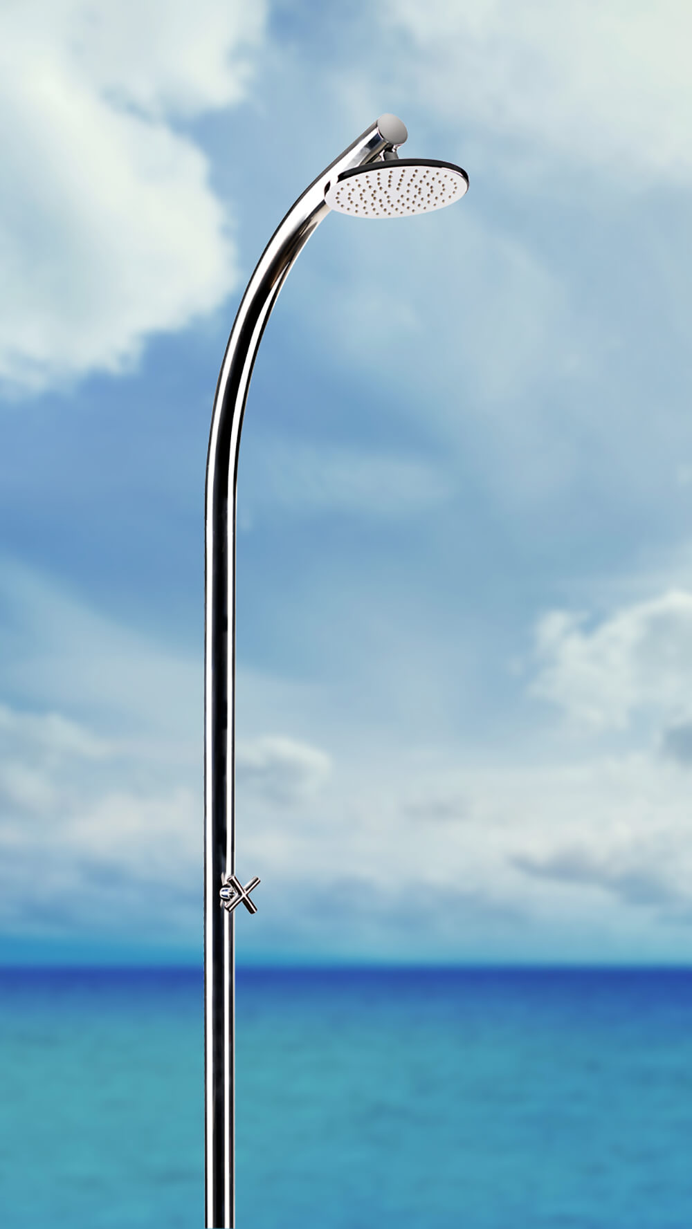 La colonne de douche traditionnelle offre un design raffiné dans ses courbes. La section ronde de la colonne, la courbure haute et à peine visible, véhiculent une extraordinaire délicatesse. Caractérisé par des lignes minimales qui en font un accessoire d'ameublement extérieur raffiné. Hera est la solution idéale pour le secteur nautique, pour les structures d'hébergement et pour votre mobilier de jardin.
