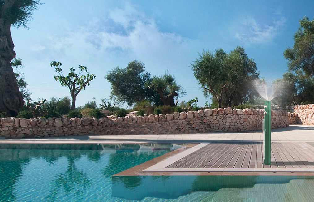 L'harmonie et l'élégance de ses formes en font un complément d'ameublement adapté à tout environnement, que ce soit uniquement pour le jardin ou si vous avez besoin d'une douche pour votre piscine. Idéal pour les équipements publics et balnéaires.