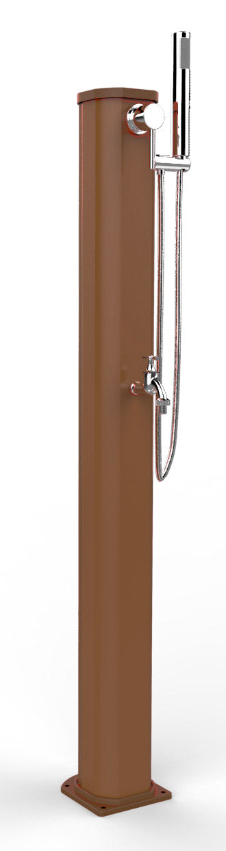 Doccia Solare da esterno dal design innovativo e originale, Jolly Go con doccetta mobile e rubinetto lavapiedi della ARKEMA.