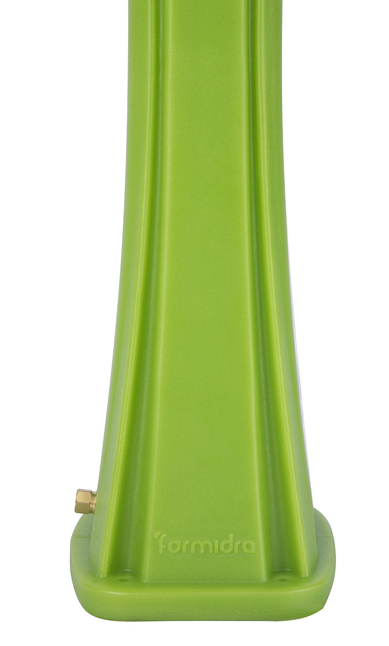 En résine thermoplastique, cette douche solaire est l'accessoire extérieur indispensable pour votre jardin. 100% écologique, équipé d'un mitigeur et d'un réservoir d'eau de 25 litres qui est chauffé uniquement par la chaleur du soleil. Avec son design incurvé, il s'adaptera parfaitement autour des piscines, des jardins et des terrasses. Un simple raccordement à une arrivée d'eau suffit à alimenter cette douche solaire. Sa base évasée assure stabilité et facilité d'installation.