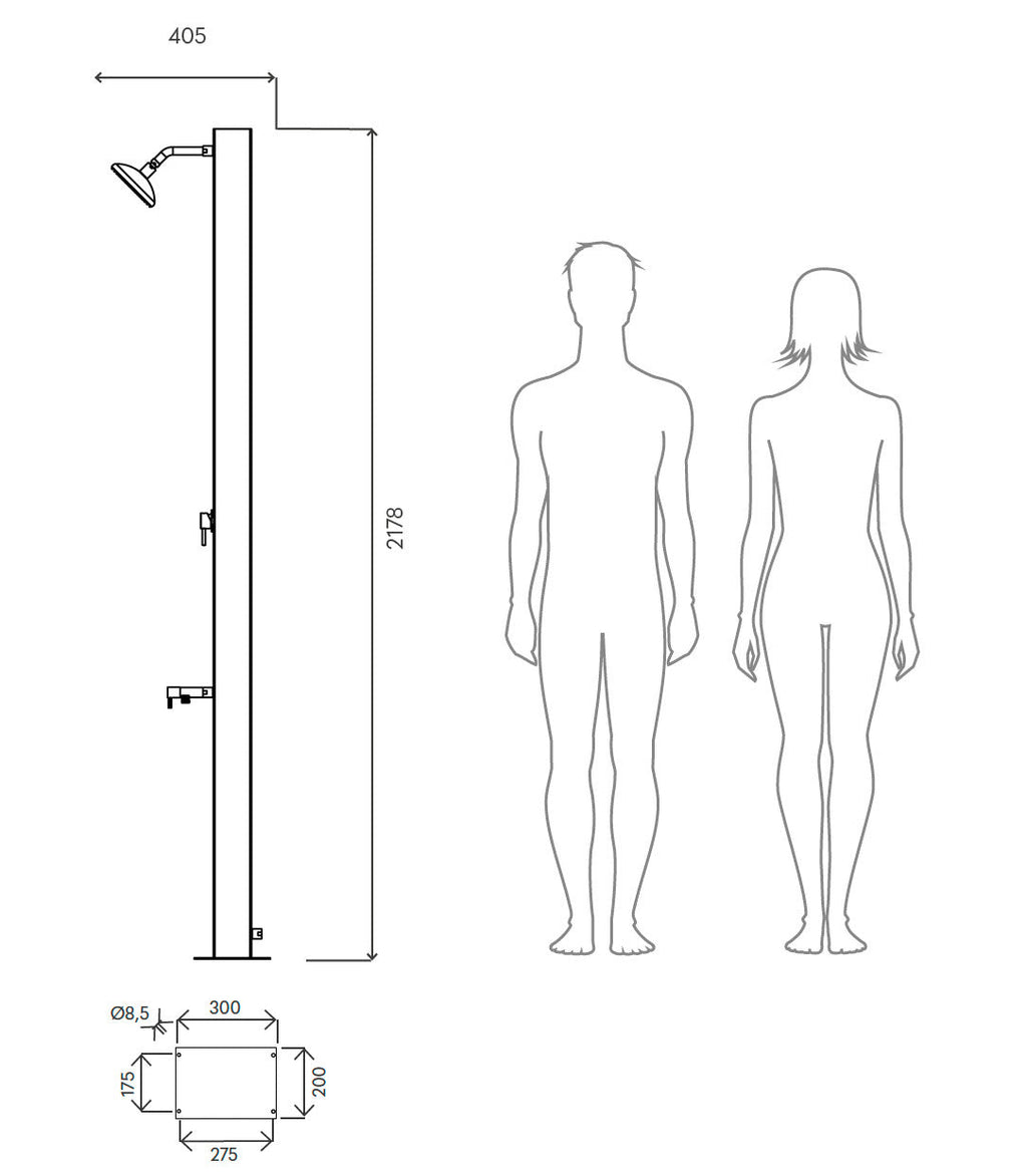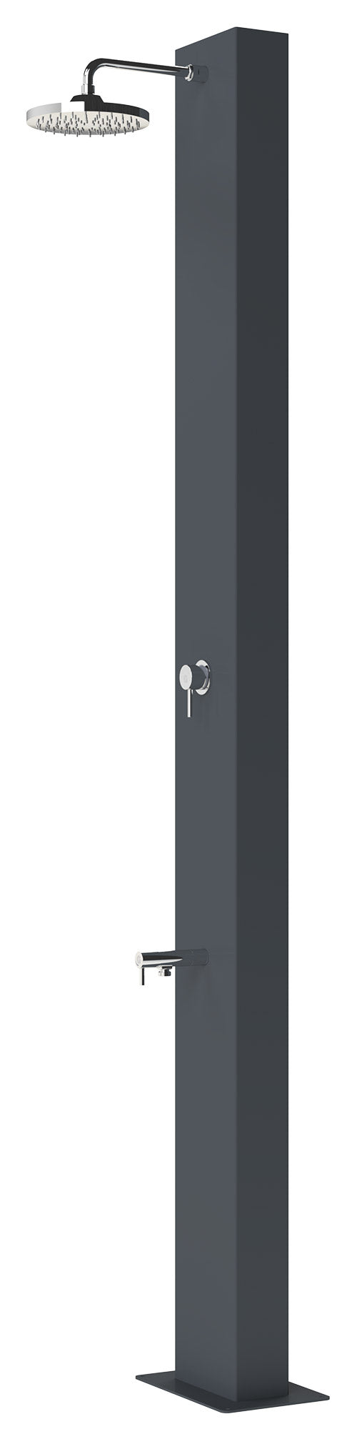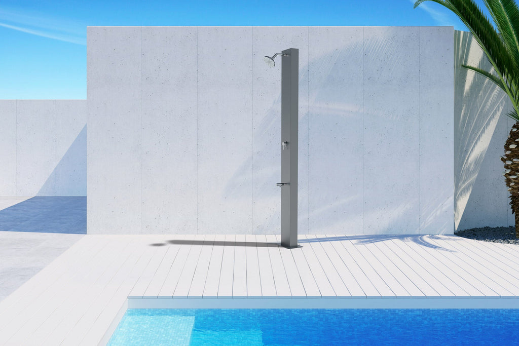 Dora Baltea la doccia solare più innovativa nel design. Le sue forme contemporanee la rendono adatta agli spazi più moderni, pur mantenendo le sue caratteristiche tecniche che permettono di godere di docce calde durante tutta la giornata grazie all’energia solare. Dotata di una capacità di 40 litri di acqua, è caratterizzata da una robusta struttura in acciaio inox, con verniciatura grigio ardesia. Le sue parti idrauliche sono tutte realizzate in metallo nobile, adatto ad uso esterno. L’ampio soffione è dotato di ugelli gommati per la facile eliminazione del calcare, che aumenta la durata media del componente; è inoltre dotato di sistema “eco rain” che consente un notevole risparmio nell’acqua erogata. Adatta agli ambienti più attuali, Dora Baltea rappresenta la soluzione perfetta per coniugare design e performance.
